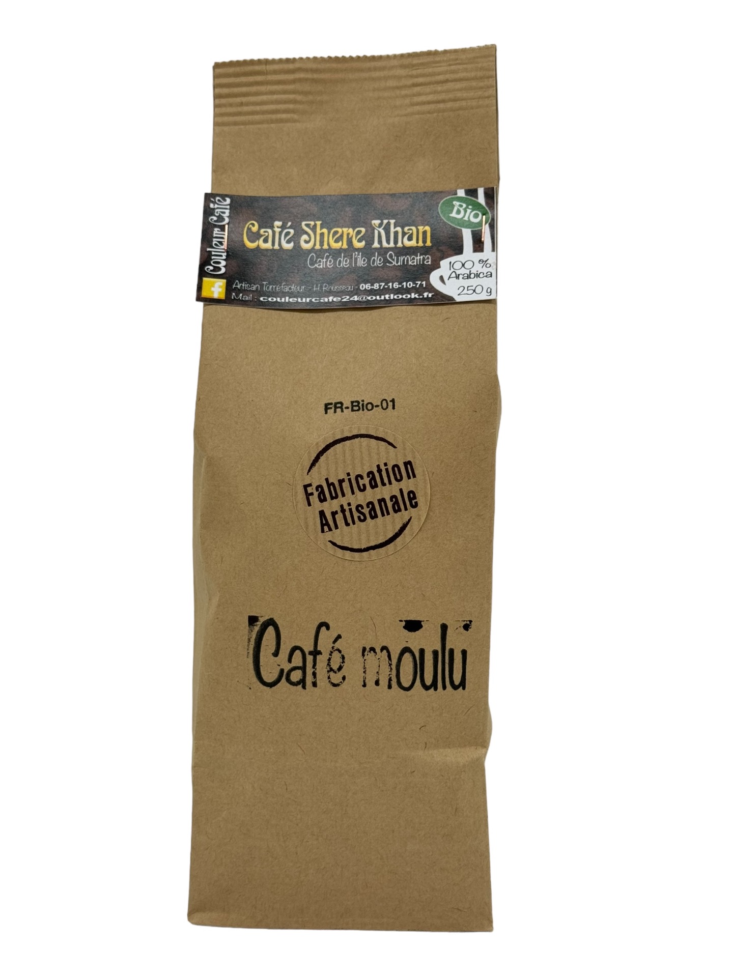 En Indonésie, tous les cafés sont récoltés à la main et ce café ne fait pas exception à la règle! Shere Khan est Produit dans la région d'Aceh, il est préparé en méthode dite ''Wet Hulled'' et est certifié Agriculture Biologique. La méthode Wet hulled est une préparation traditionnelle de Sumatra. Le café est déparché à un fort taux d'humidité, plus de 16%, puis séché en vert, ce qui donne une couleur bleue vive au grain.