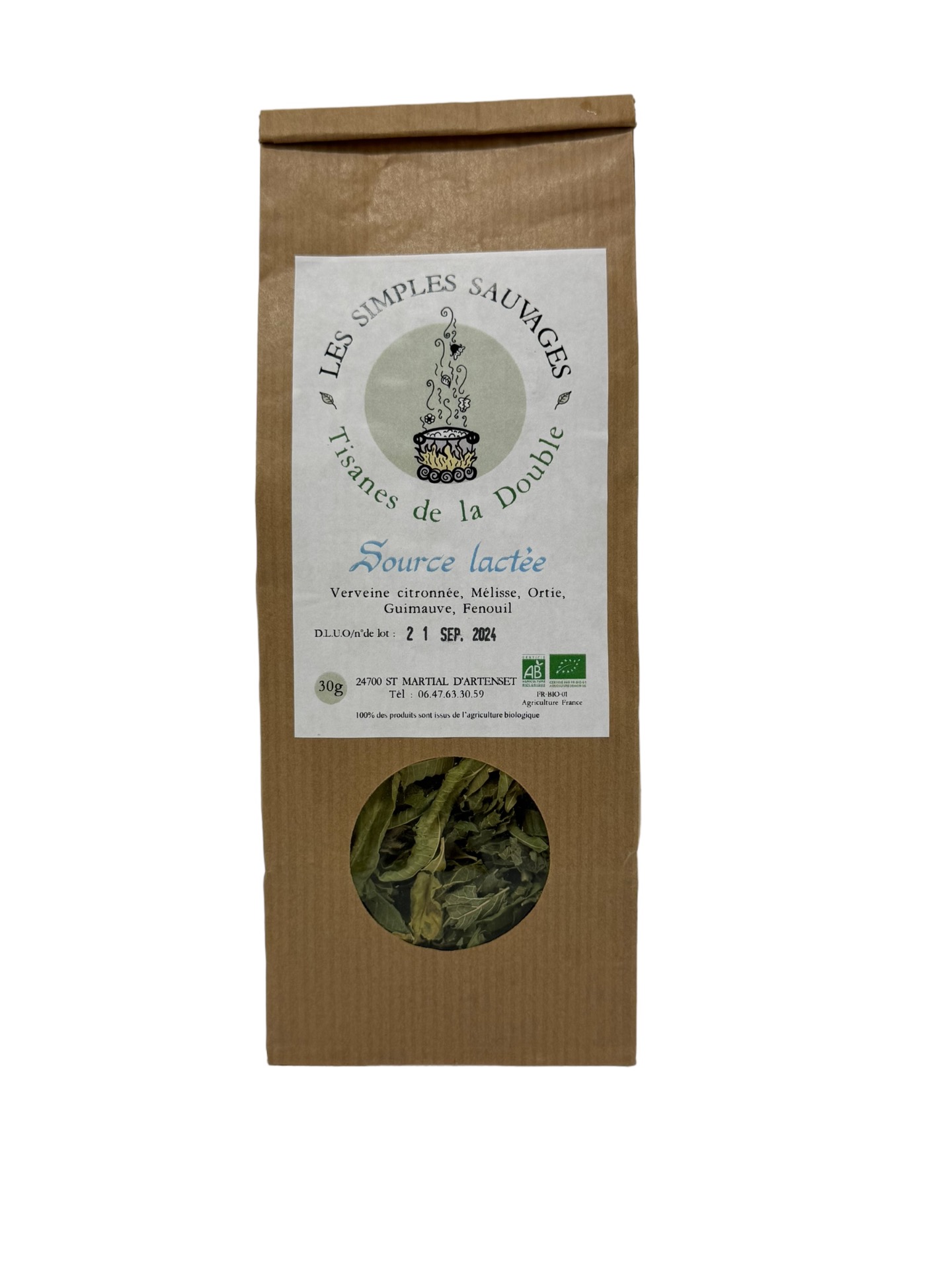 Tisane composée de : verveine citronnée, mélisse, ortie, guimauve et fenouil.